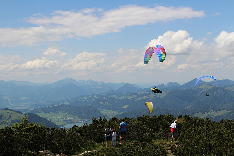 Bei guten Wind- und Wetterverhältnissen treffen Sie hier oben häufig auf Paragleiter. Vielleicht haben Sie ja Lust, selbst einmal Fluggast bei einem Tandemflug zu sein? Die Flugschule Kössen gibt Ihnen die Möglichkeit, mit einem erfahrenen Piloten lautlos durch die Lüfte zu gleiten.