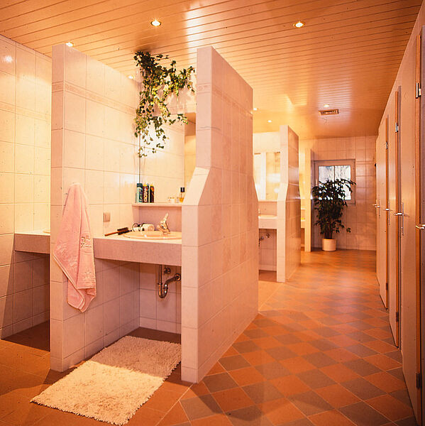 Voor lichamelijk gehandicapten is er een badkamer van 6,7 m² die gemakkelijk toegankelijk is met de rolstoel en met de modernste hulpmiddelen is uitgerust. Het gebruik is gratis voor iedereen die de badkamer nodig heeft.