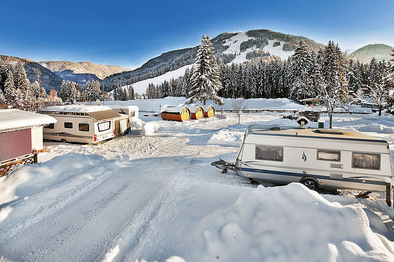 Het aanbod van pistes reikt van blauw tot zwart. De skischool Kössen en de skiverhuur bevinden zich naast het dalstation, op 350 m afstand van de camping. Het skicentrum Zahmer Kaiser biedt 10 verschillende afdalingen. Een groot deel hiervan is geclassificeerd als "eenvoudig".